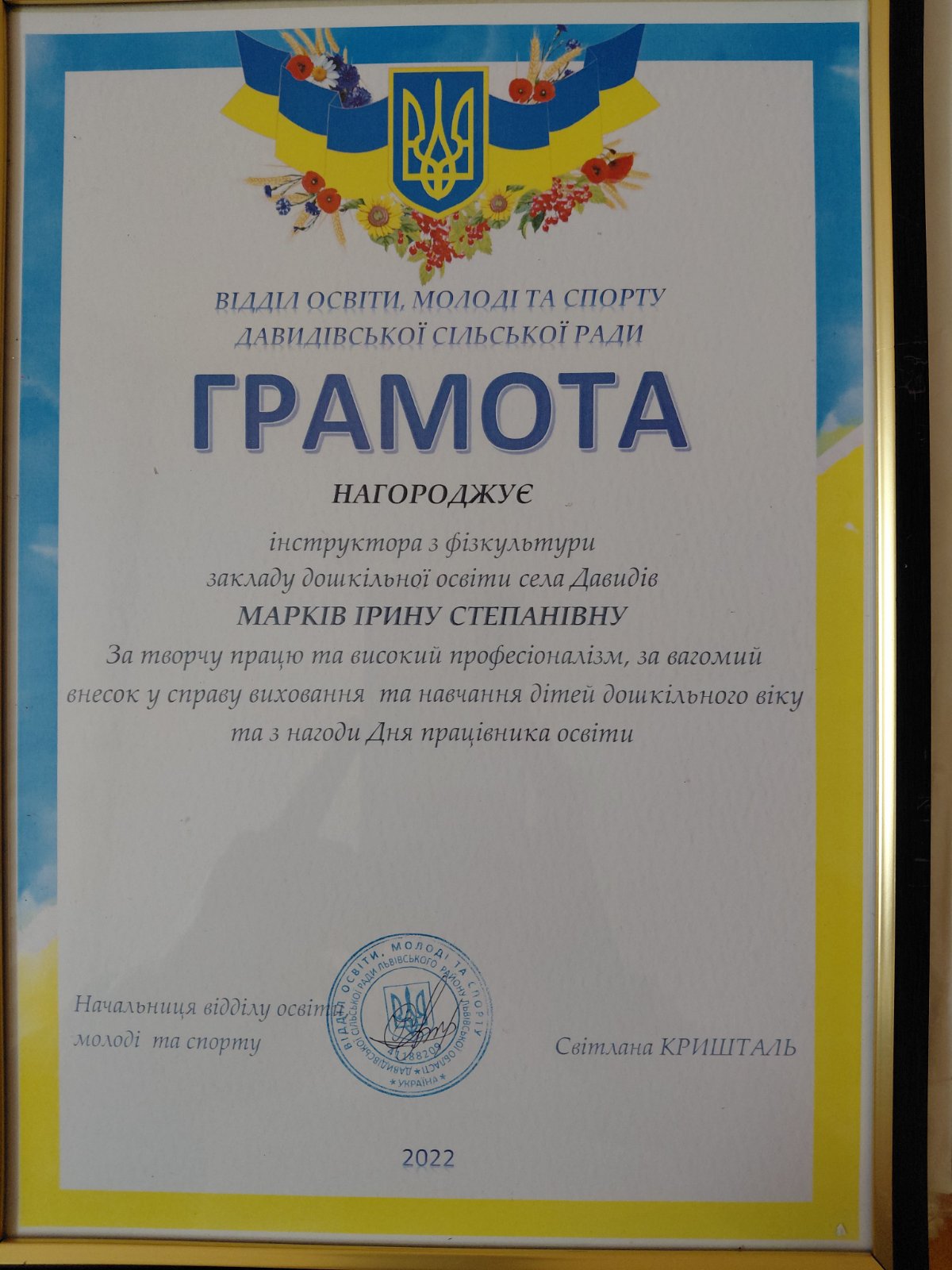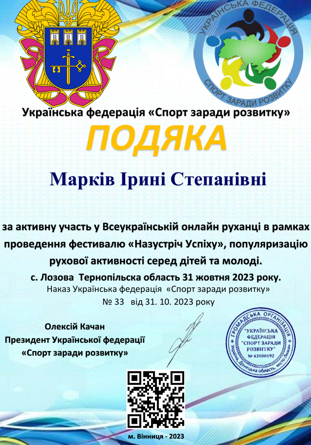 Марків Ірина Степанівна - інструктор з фізкультури