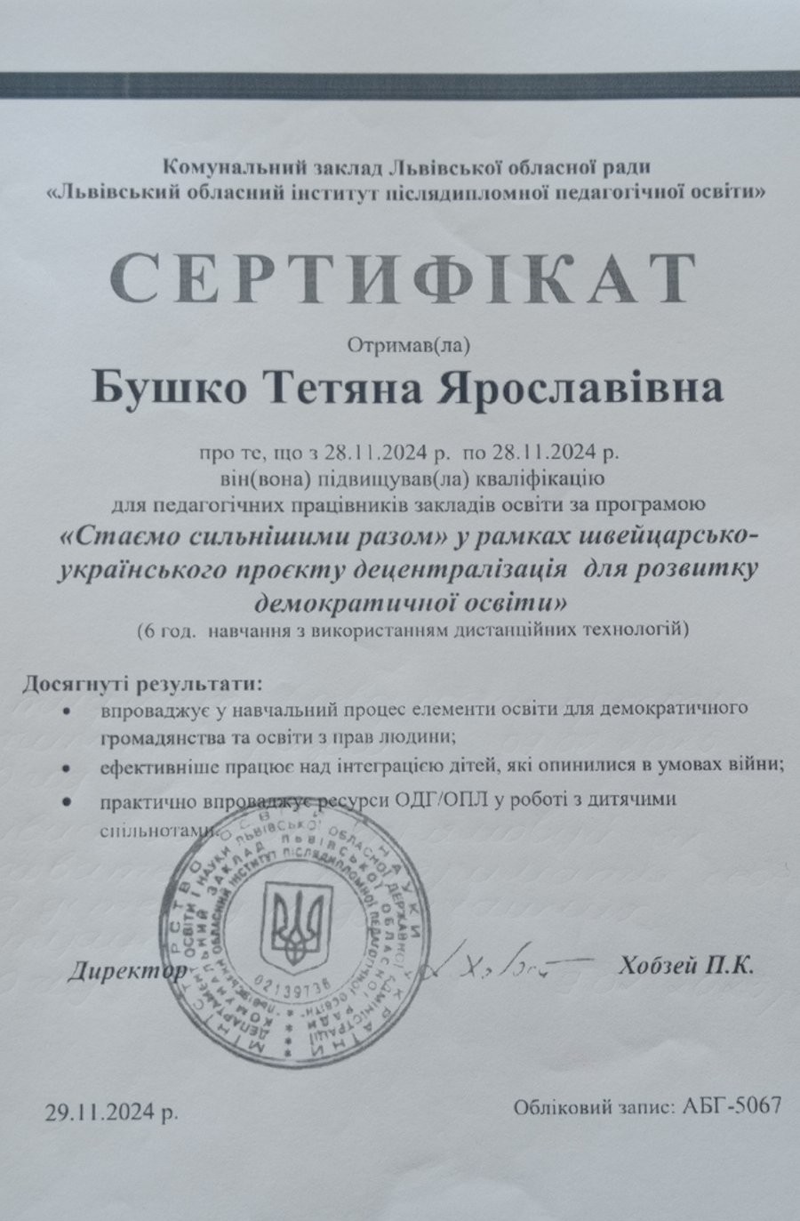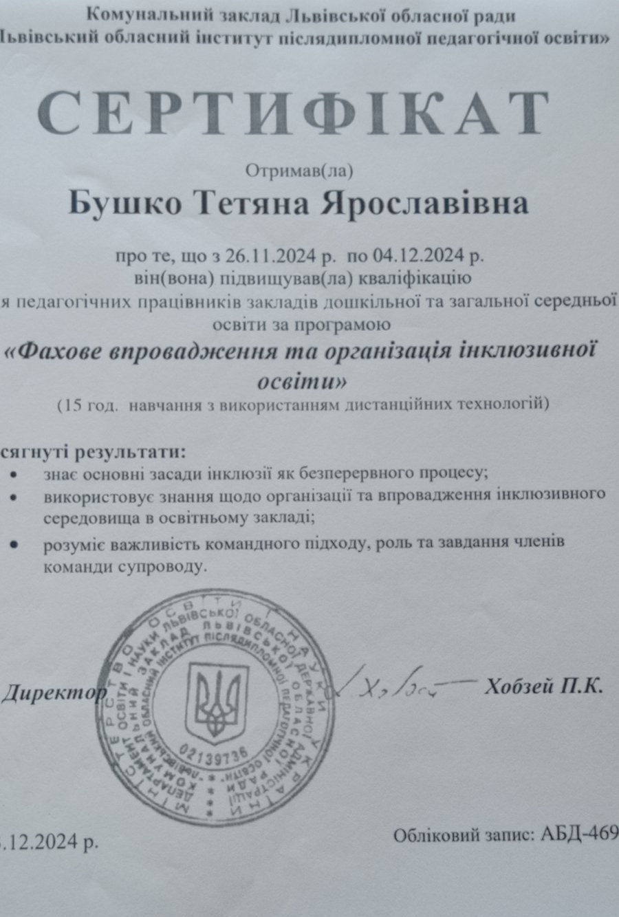 - Рік атестації: 2024 рік