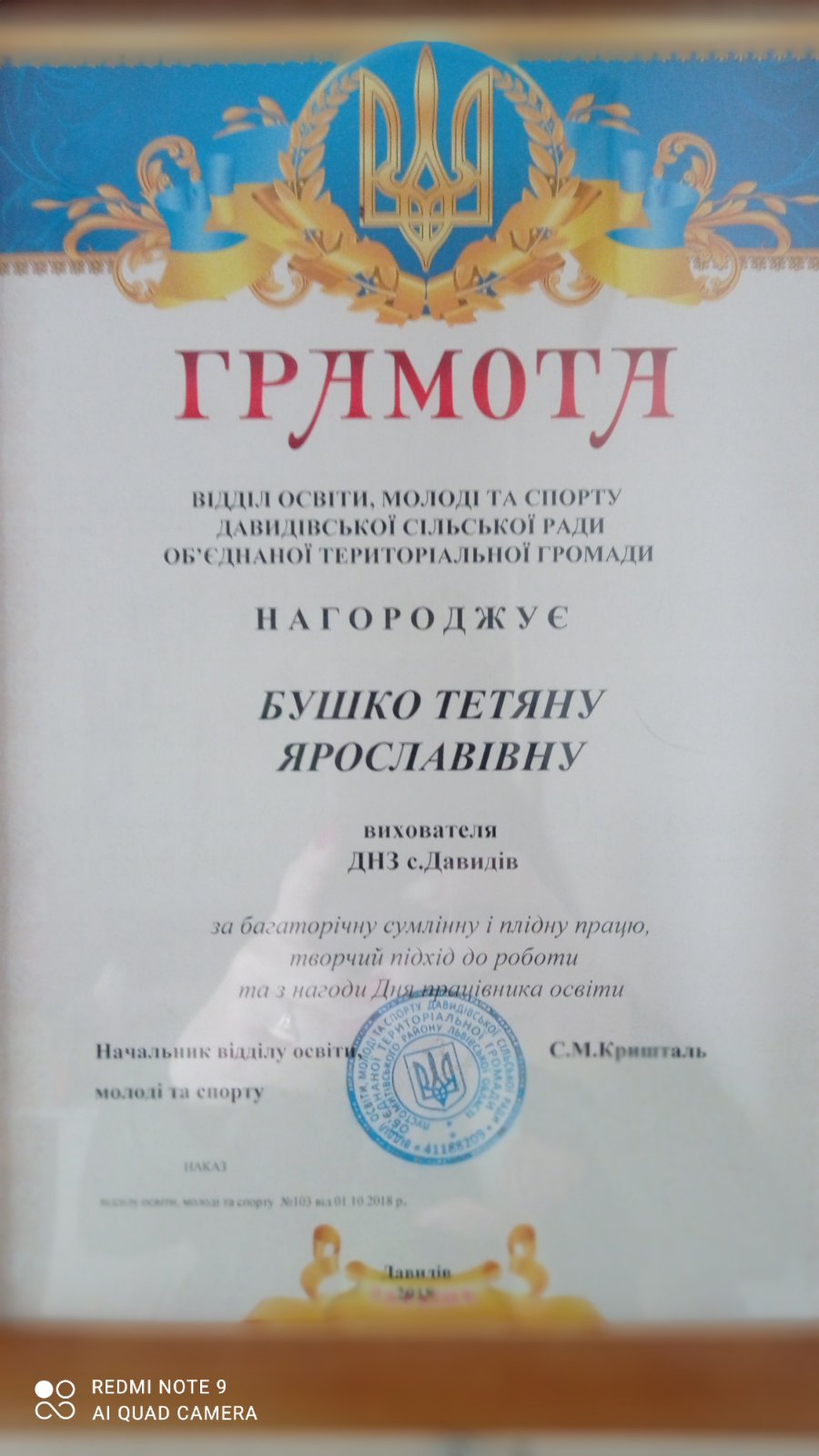 Бушко Тетяна Ярославівна - вихователь