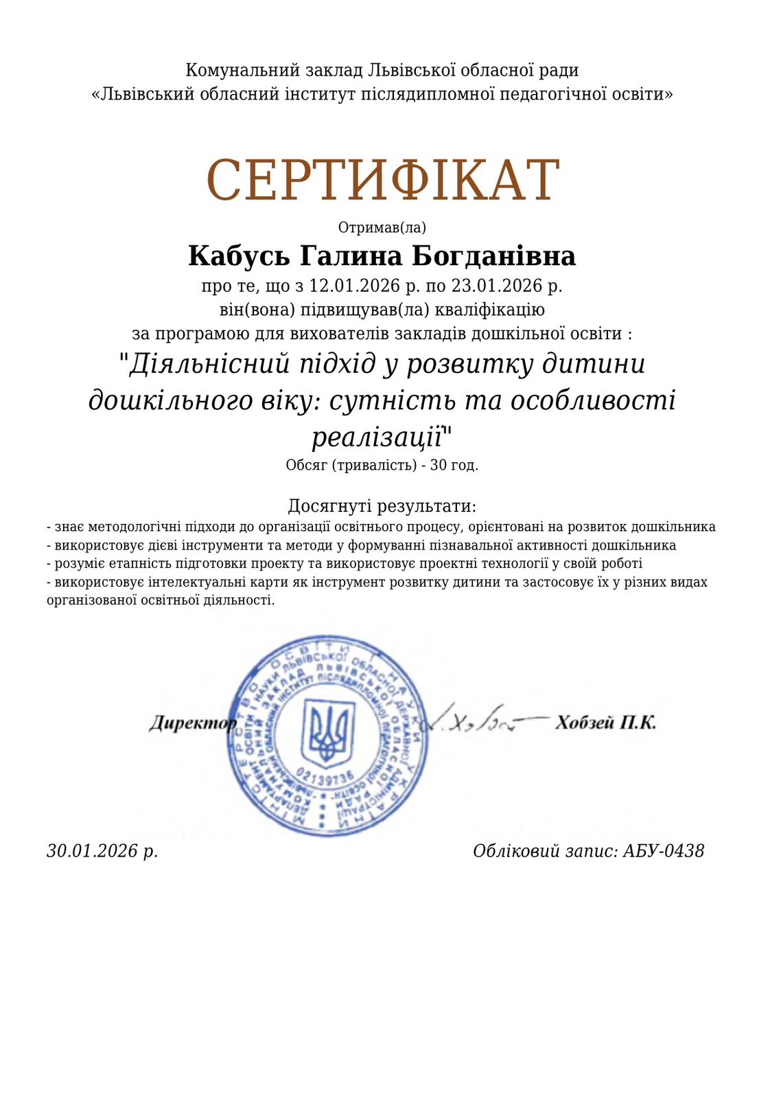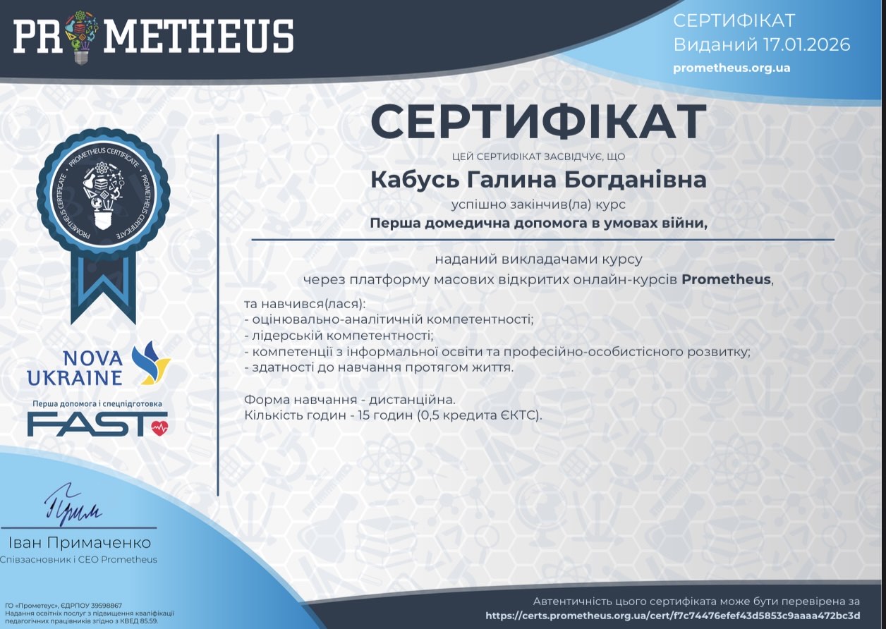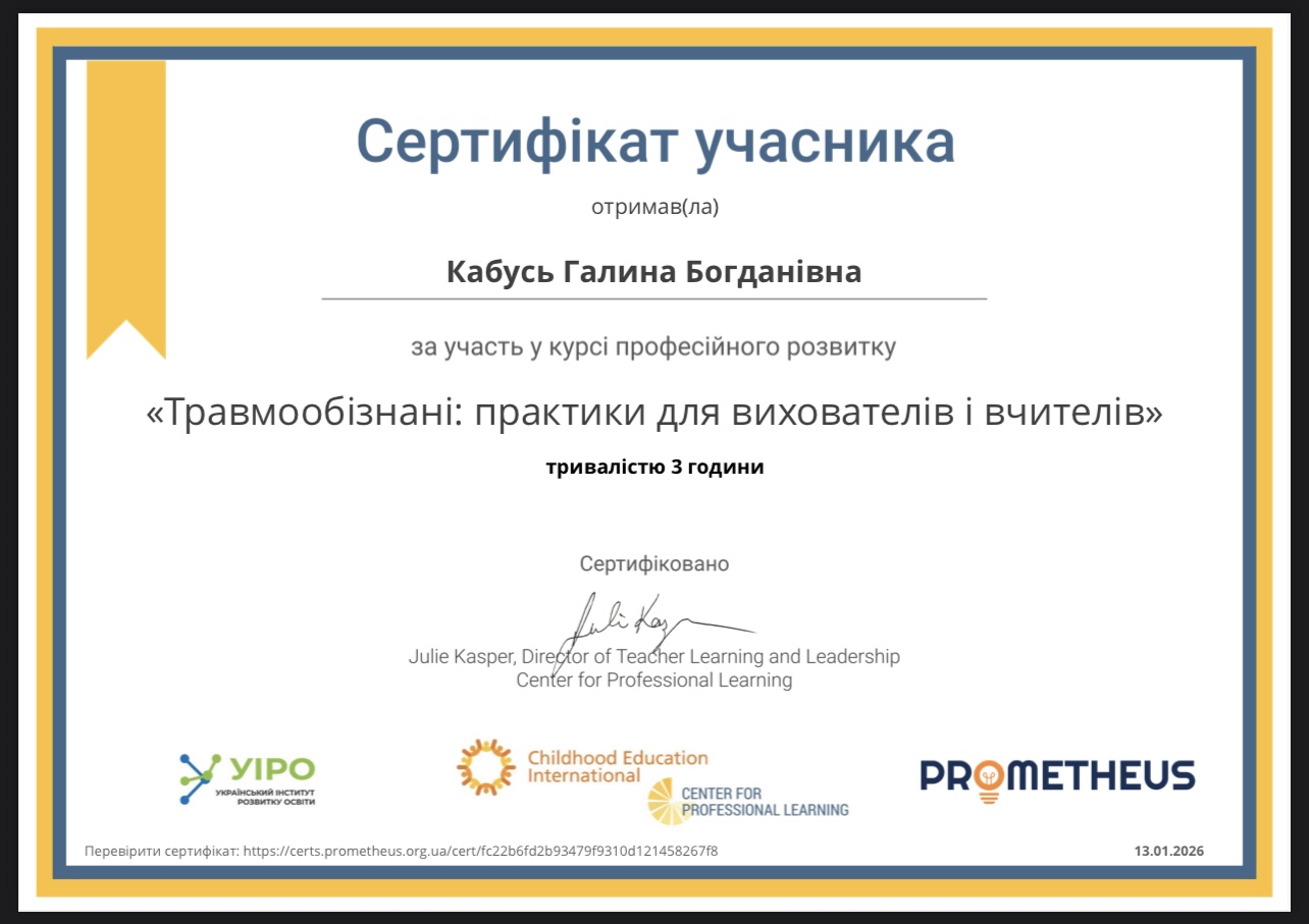 Кабусь Галина Богданівна - вихователь