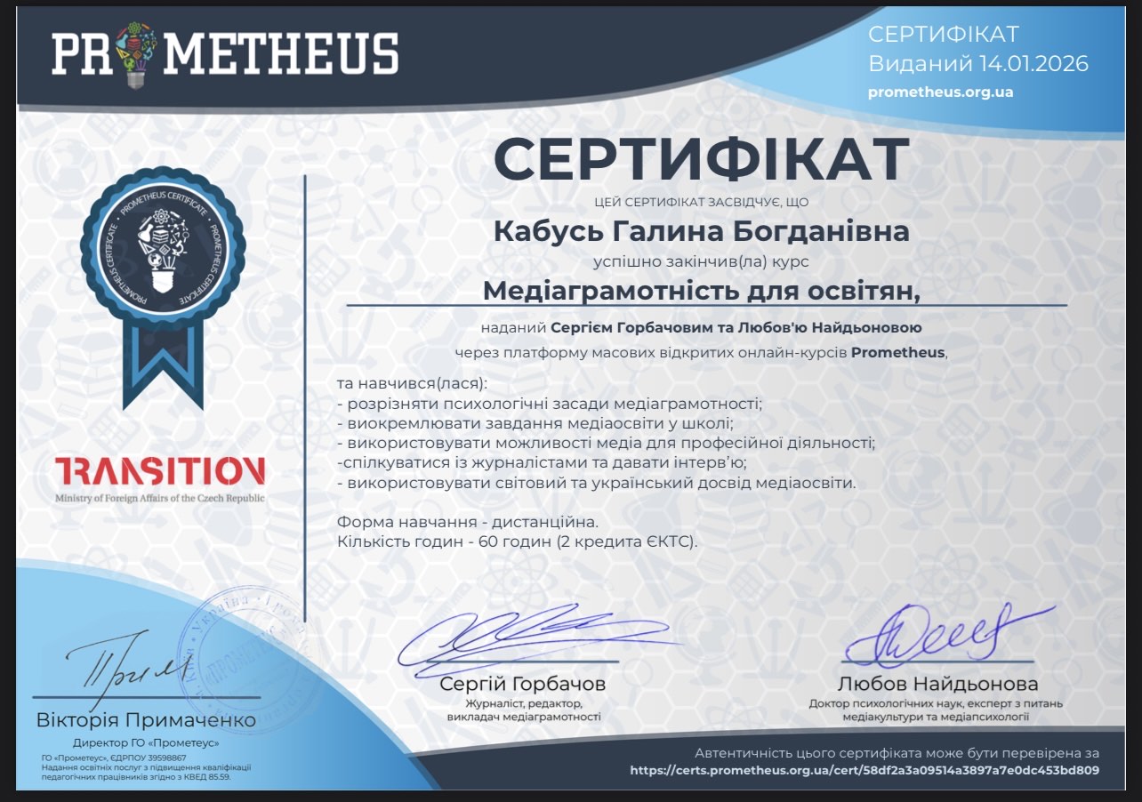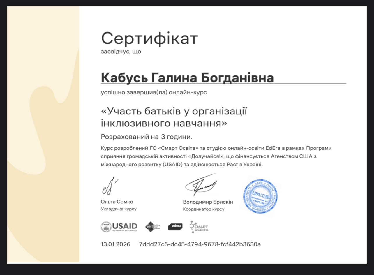 - Педагогічний стаж: 7 років