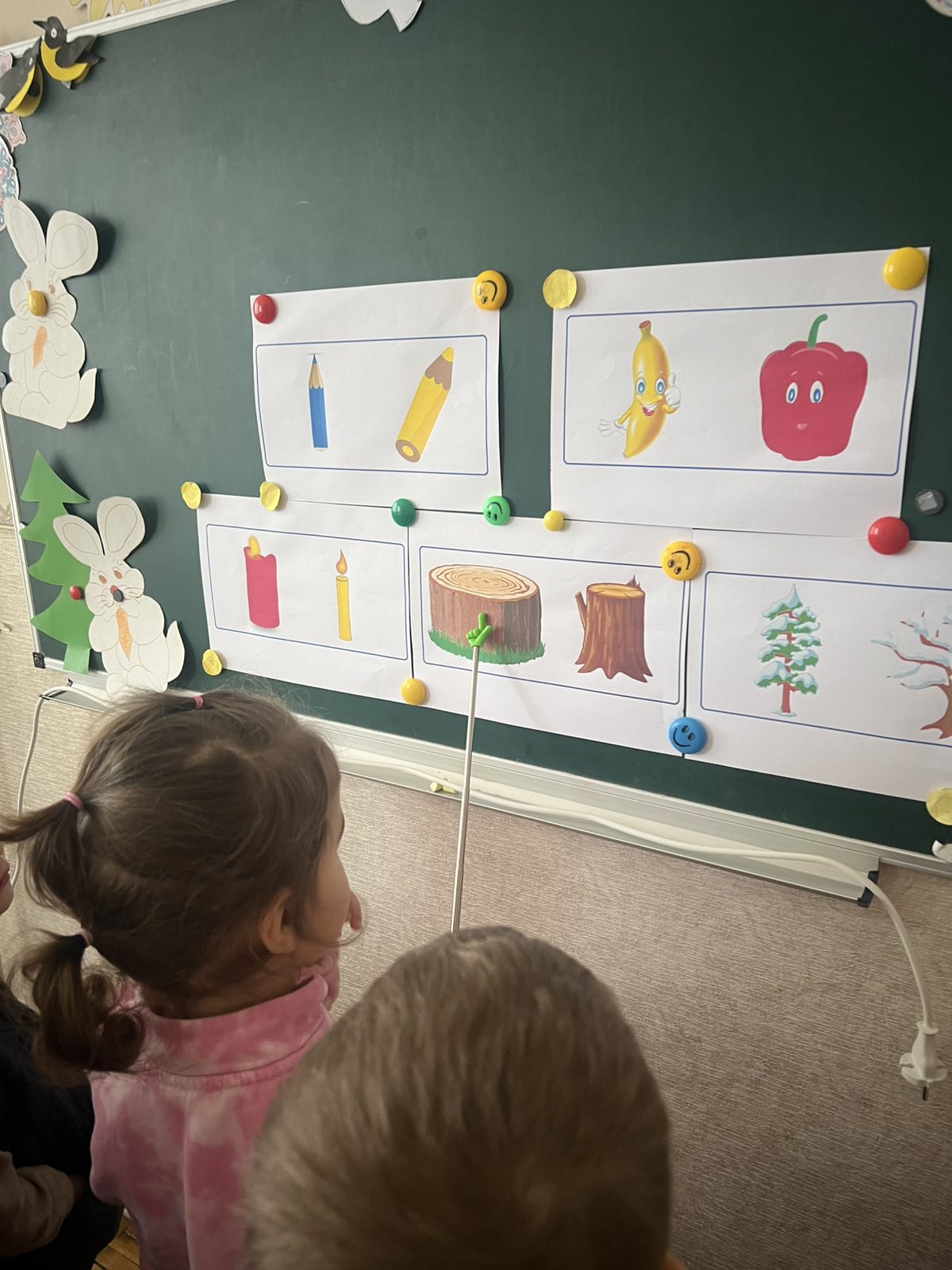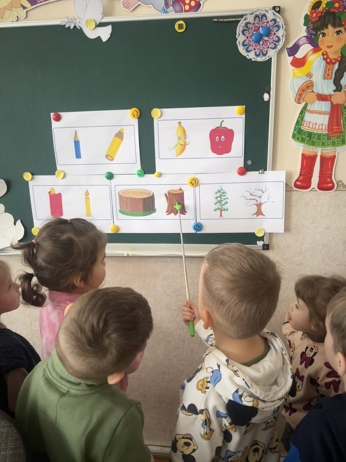 Мета: ознайомити дітей з поняттям «висота предметів», учити порівнювати предмети заввишки, позначаючи результати порівняння словами («вищий», «нижчий», «рівні»(однакові заввишки); продовжувати вчити дітей розрізняти й називати частини доби(день-ніч, ранок – вечір), розвивати увагу, пам'ять, мислення, виховувати бажання займатися розумовою діяльністю.