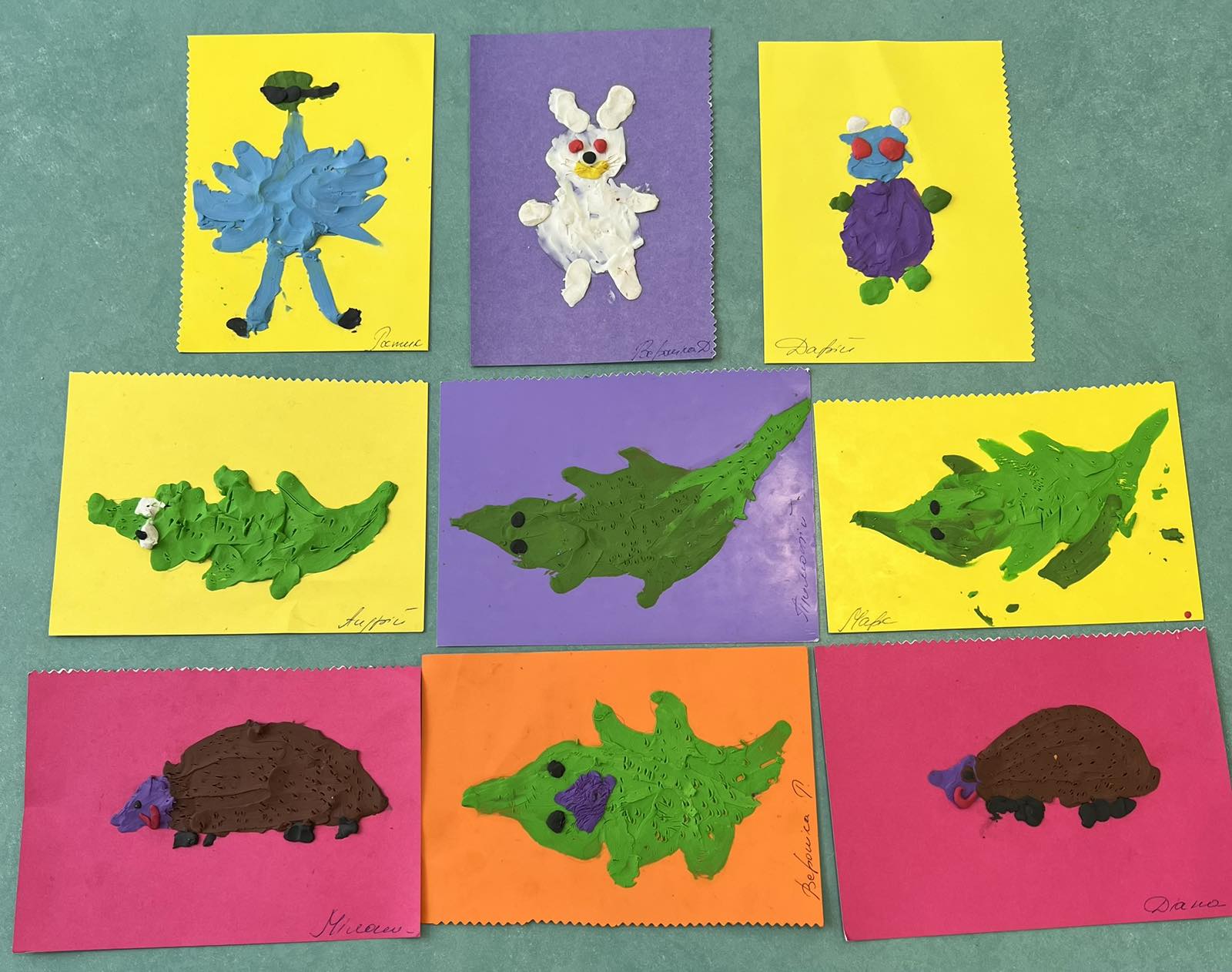 Мета: навчити дітей створювати образи тварин; сприяти розвитку вміння створювати цікаву композицію; розвивати асоціативне сприйняття кольорів,дрібну моторику рук ;виховувати любов до прекрасного.