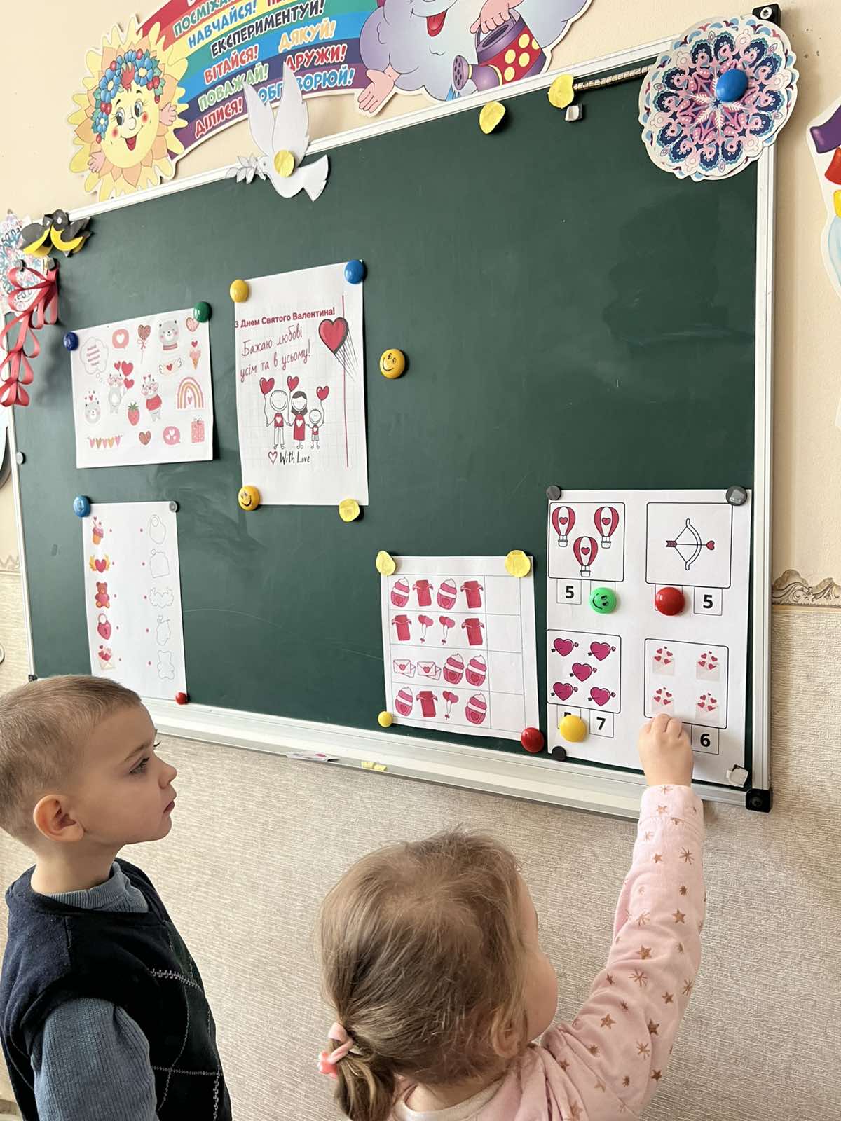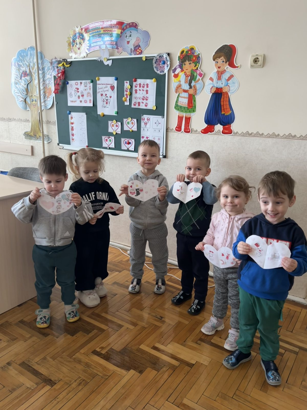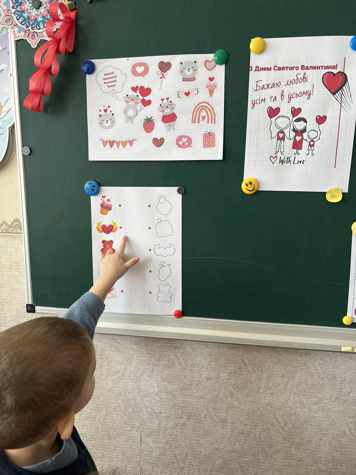 Мета: розширити та поглибити знання дітей про взаємовідносини людей, про почуття любові;ознайомити із святом Св.Валентина; розвивати увагу,критичне мислення,зв’язне мовлення, дрібну моторику; виховувати вміння формувати добрі взаємовідносини.