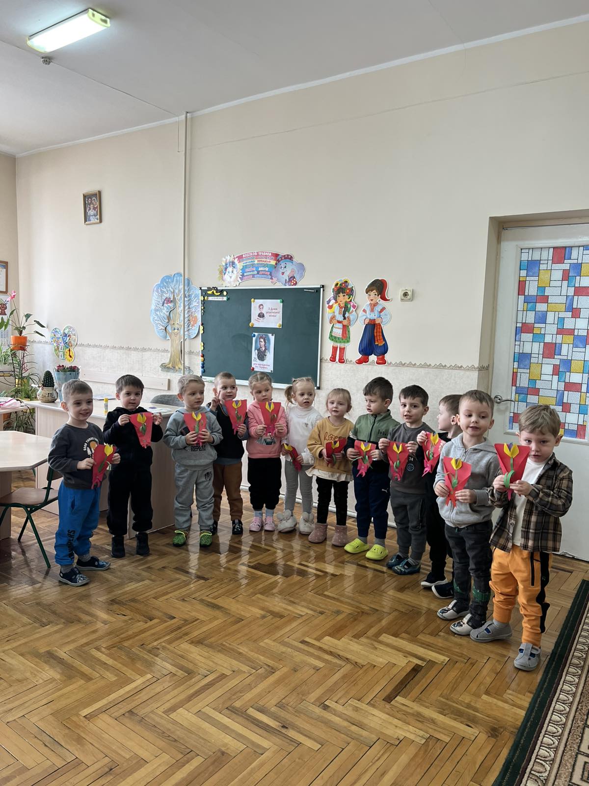Мета : ознайомити дітей із значенням Дня української жінки; розширити знання дітей про роль жінки у сімʼї; вчити створювати самостійно аплікацію з кольорового паперу;розвивати дрібну моторику рук;виховувати повагу до жінок.