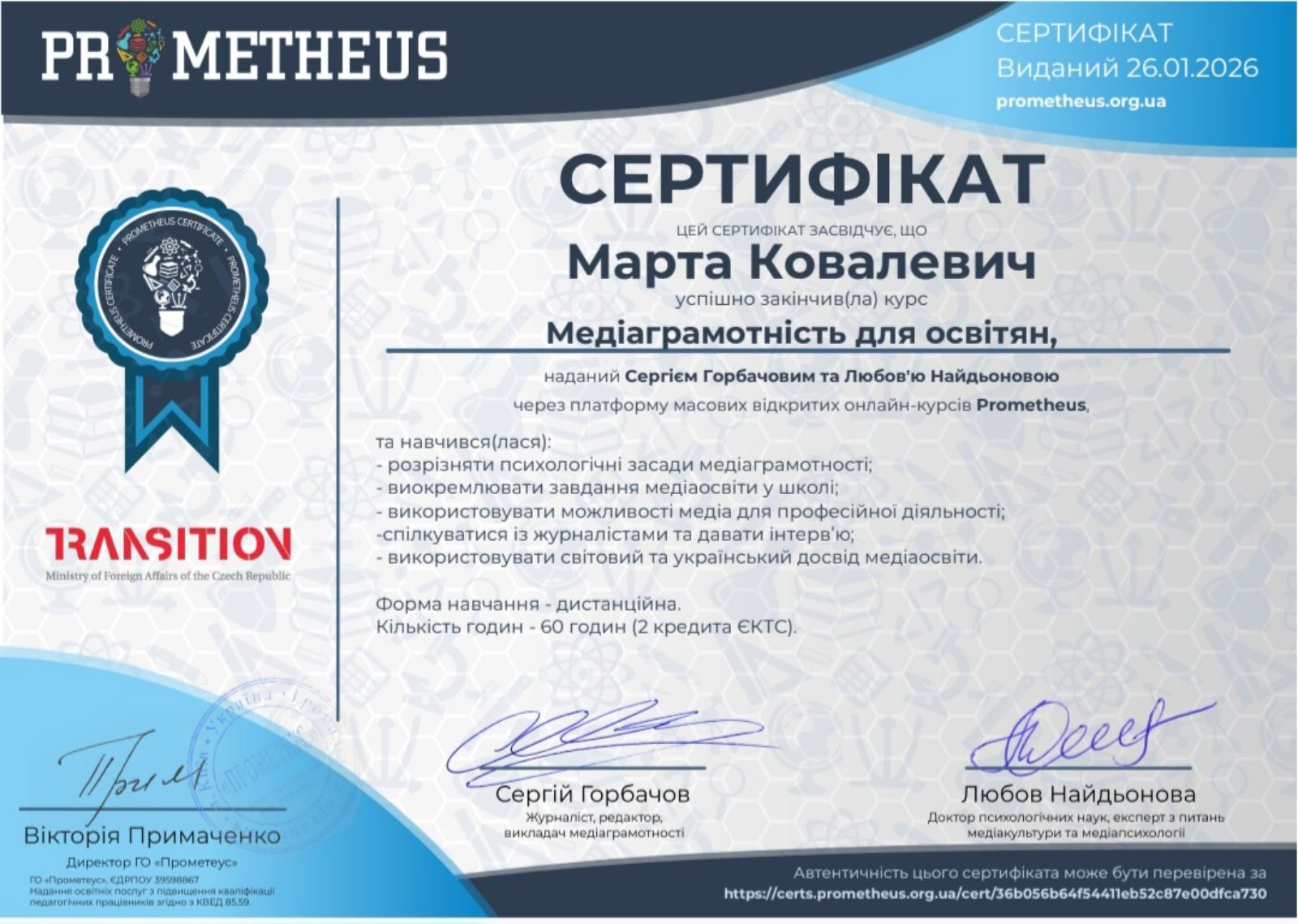 - Рік атестації: 2025 рік