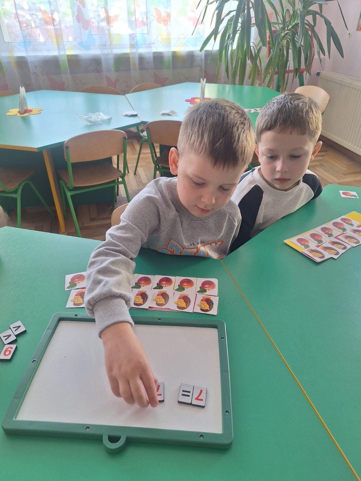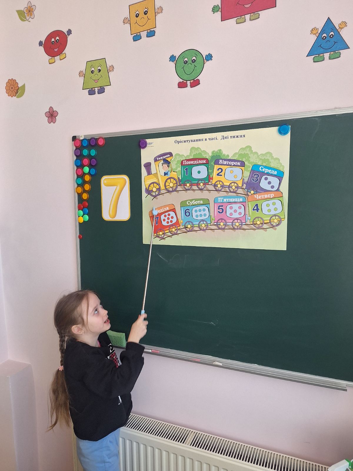 Тема заняття: Число і цифра 7. Порівняння двох множин, суміжні чимла. Орієнтування в часі. Робота в зошитах