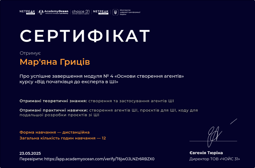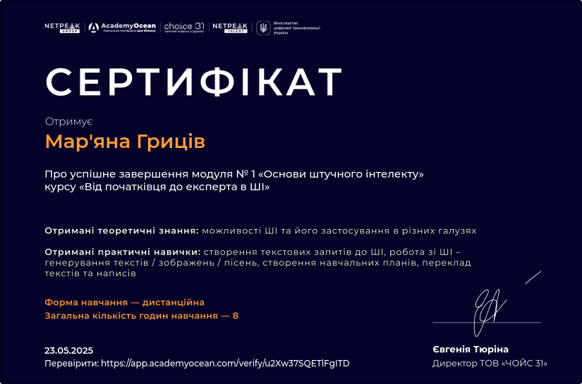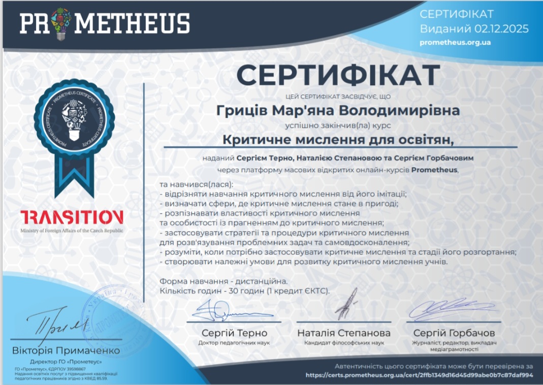 - Рік атестації: 2025 рік