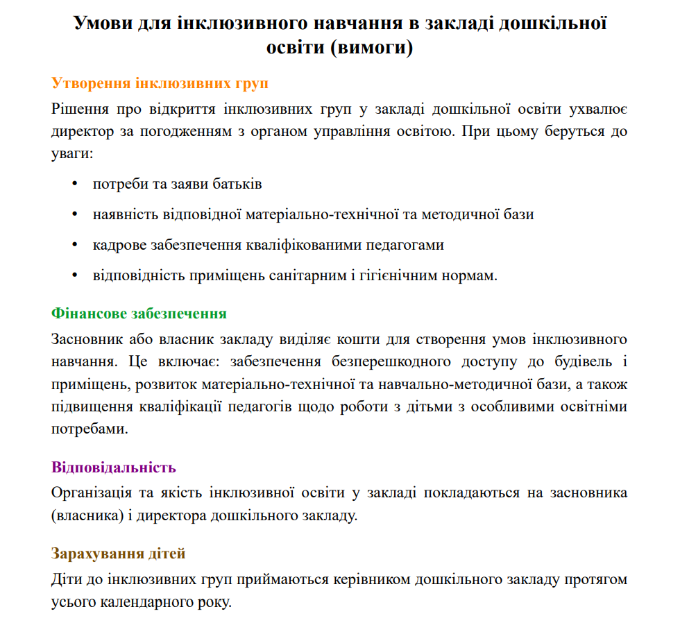 Умови доступності ЗДО с. Давидів для навчання осіб з особливими освітніми потребами